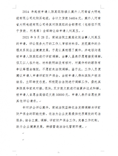 商城县人民法院优化营商环境 工 作 简 报 (第5期)