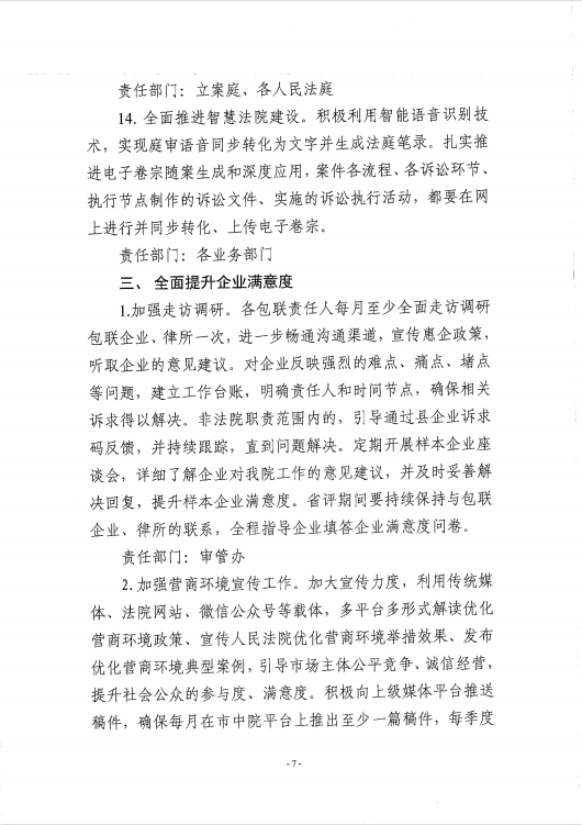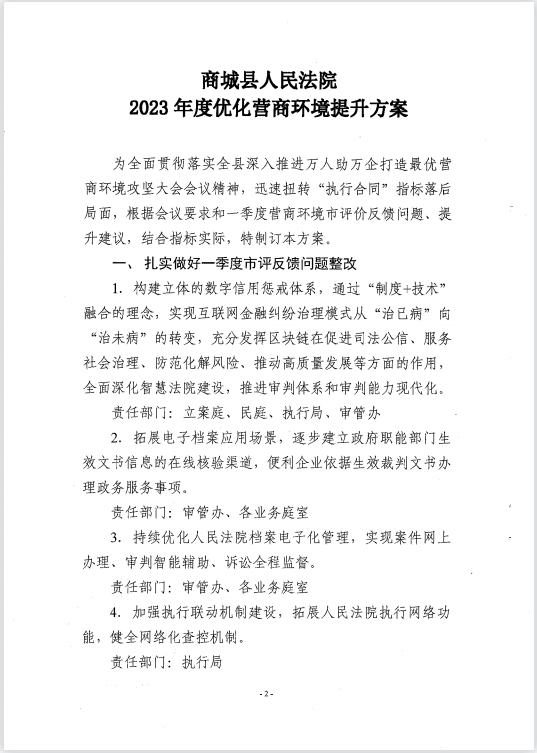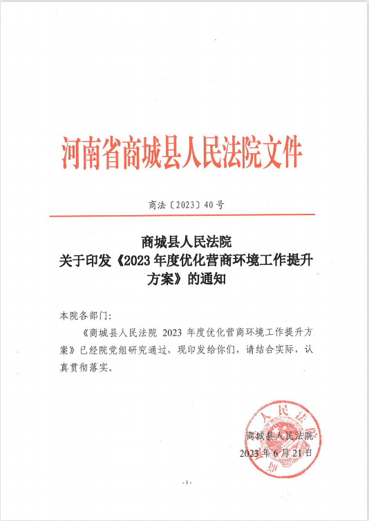 商城县人民法院关于印发《2023年度优化营商环境工作提升方案》的通知